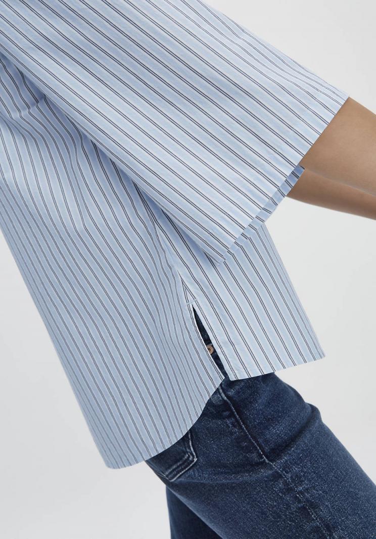 Die Gentlewoman unter den Blusen ist diese minimalistische Bluse mit feinem Streifen aus nachhaltiger . Sie zeichnet sich aus durch ihre schlichte Eleganz, subtile Designelemente und eine klare Linie. In den schlichten 3/4-Ärmeln, der versteckten Kellerfalte am Rücken sowie den kleinen Seitenschlitzen zeigt sich ein kultivierter, respektvoller Design-Entwurf – passend zur Frau, die sie trägt.