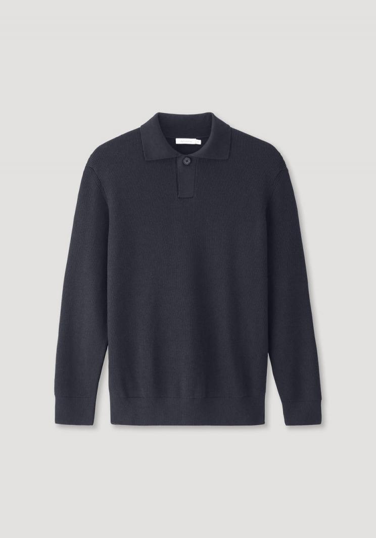 Mit und ohne Pferd: Das hochwertige Langarm Feinstrick-Polo mit trägt sich mit Würde dank stilbildendem Kragen und typischer Polo-Knopfleiste.