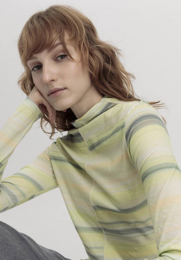 Premium-Qualität trifft auf Garderoben-Highlight. Das seidige Stehkragen-Shirt kommt im kräftigen Digitalprint mit Farbverlauf – ein Hingucker zum Anziehen.